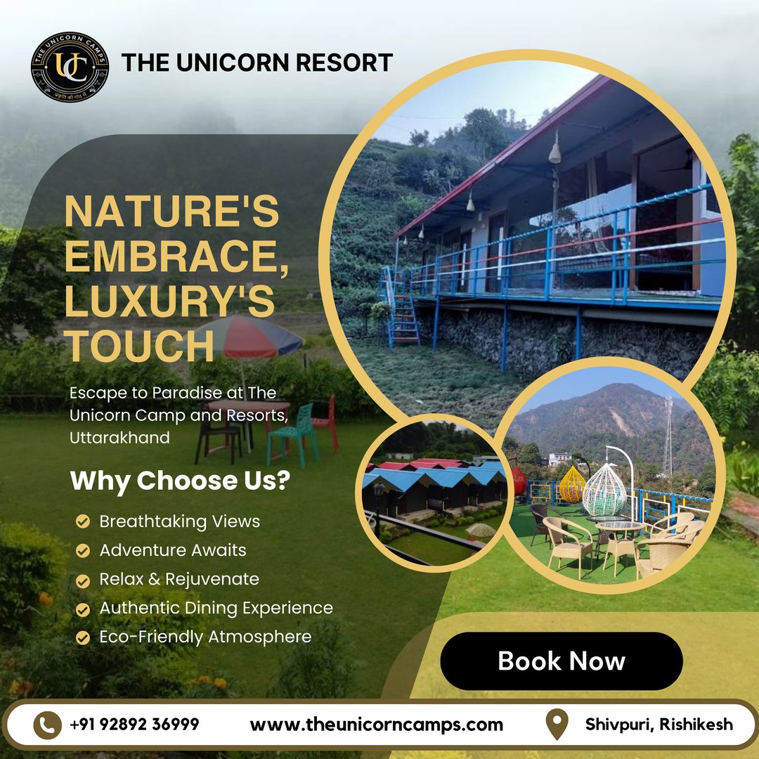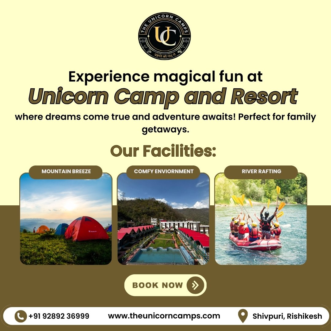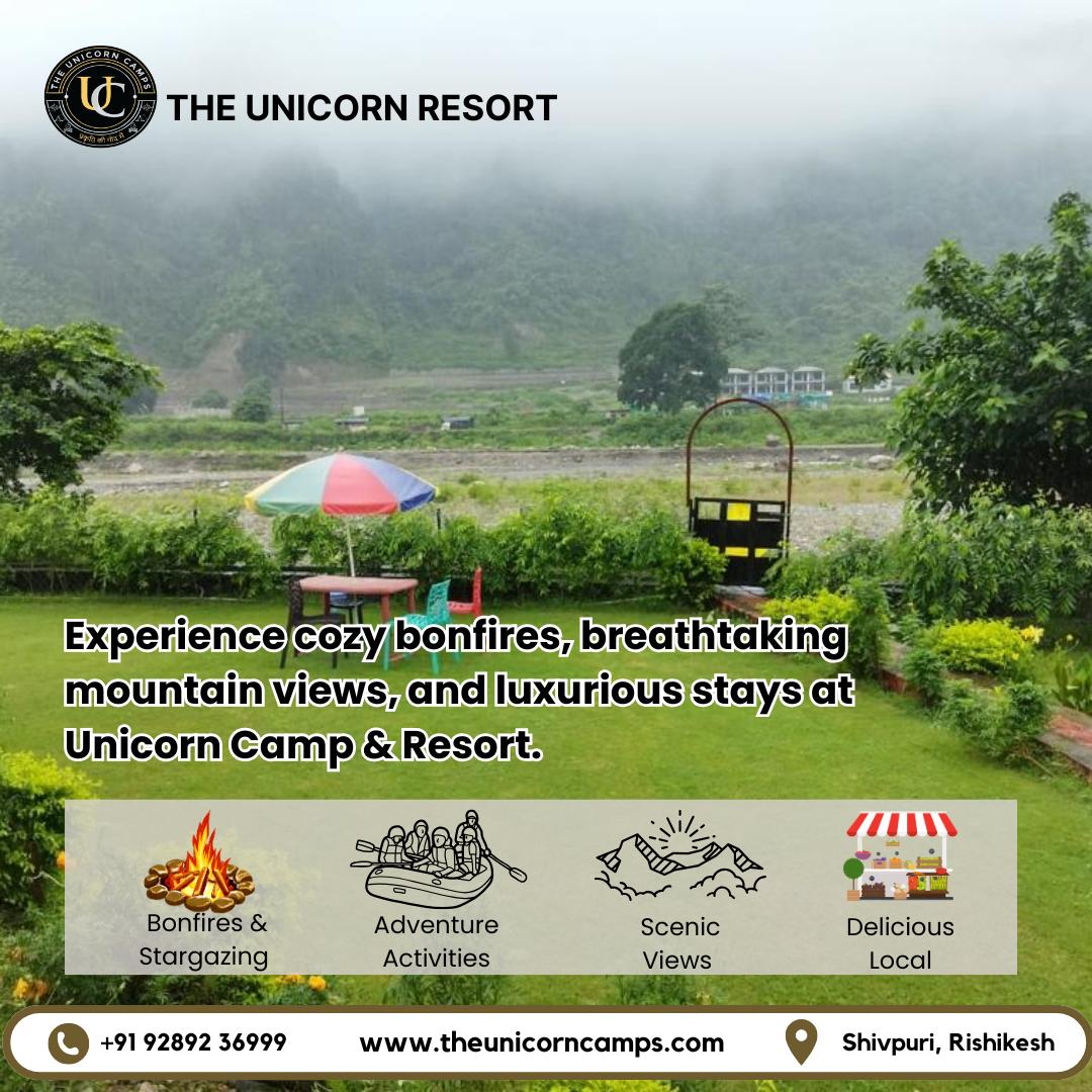 Unicorn Camp offers enchanting camping experiences in Rishikesh, Shivpuri, with options ranging from hostels to luxury tents. We serve adventurous travelers seeking unforgettable stays and crossfire rafting adventures. Located amidst the beautiful landscapes of Rishikesh, we believe in providing reliable, safe, and quality services with transparent pricing, ensuring a trustworthy experience. Our unique blend of luxury tents, bonfire evenings, and a focus on the crossfire lifestyle sets us apart. Join us for a magical camping experience! Book your stay online today and discover the wonder.